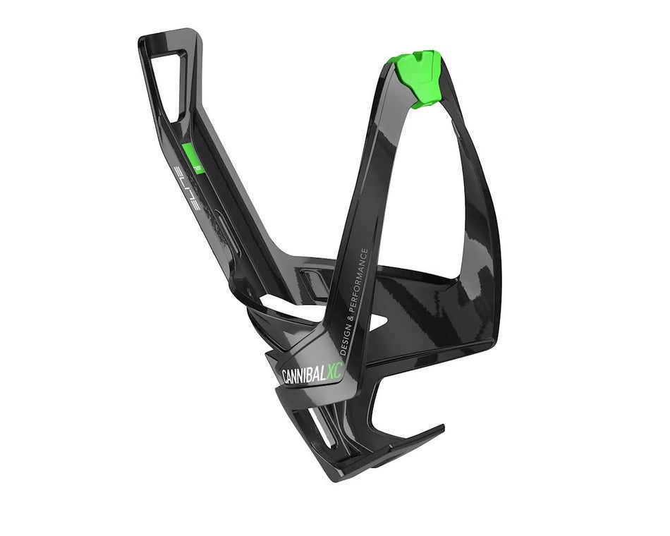 The Elite Cannibal XC Bottle Cage in Black Glossy with Green Graphic offers superior bottle security, even on the roughest courses. Crafted from castor oil-based bio-plastics, this eco-friendly bottle cage uses sustainable, natural materials to replace traditional fossil fuel-derived components. Designed for durability and reliability, the Cannibal XC ensures your bottle stays securely in place, making it the perfect companion for all your rides.