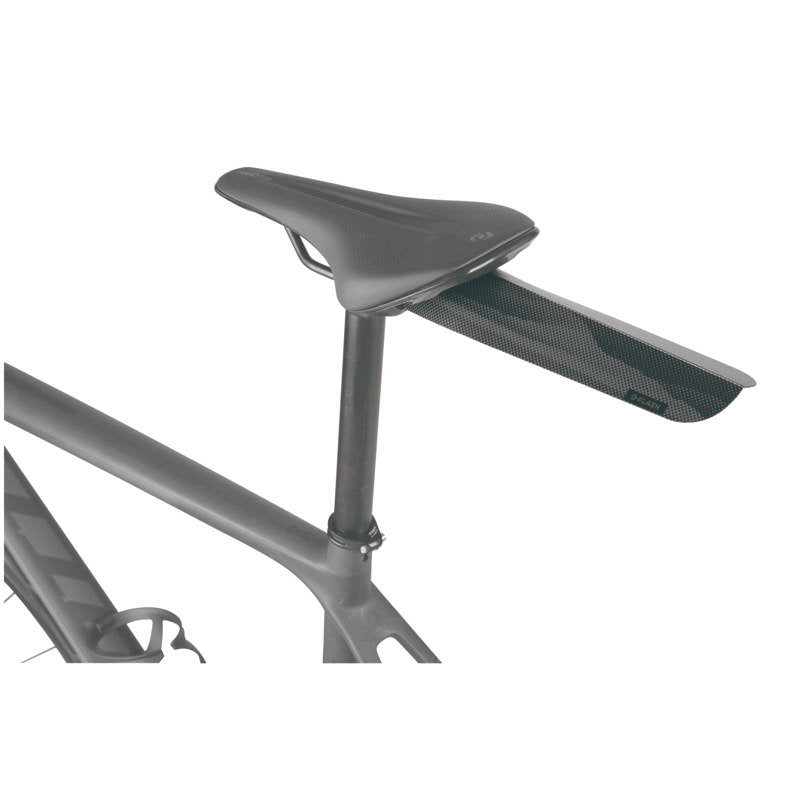 The Topeak D-Flash Express S is an ultralight saddle-rail-mounted rear fender made from durable polypropylene. No assembly required—just fold along the perforated lines and secure with hook-and-loop straps for fast, universal mounting. Its sleek design provides reliable splash protection while weighing only 16 g.