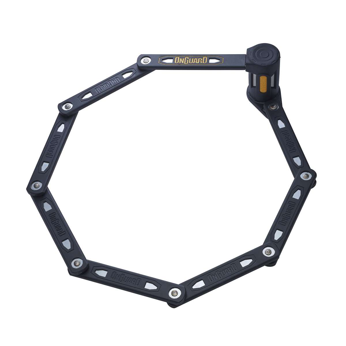 Folding locks, also known as link plate locks, combine near u-lock security with the ease of use and versatility of a cable lock. Remarkably compact, the K9 folding lock series is made of hardened steel plates and features OnGuard’s pick, pull, and drill-proof Z-Cylinder key mechanism. Once unfolded, the K9 has the length to secure frames and wheels to a rack or other solid object. Included mountin bracket fits most bicycle tubes for easy transport.