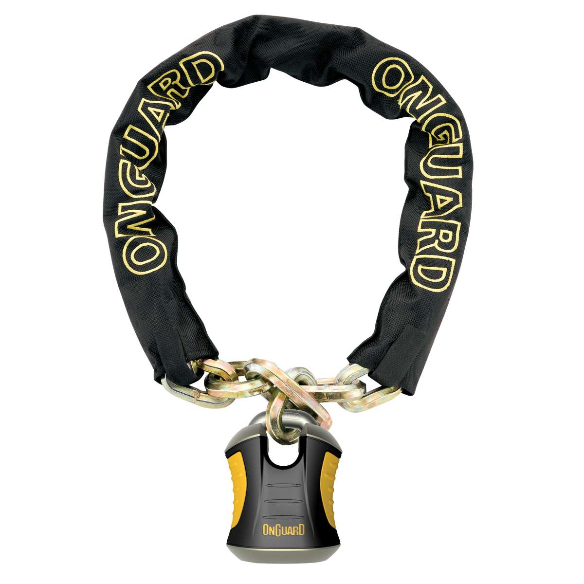 The OnGuard Beast 4' Chain with Padlock delivers professional-grade protection for high-value bikes, motorcycles, and e-bikes. Its 1080 mm (42.5 in) titanium-reinforced, hardened-steel hexagonal links offer maximum resistance against cutting, sawing, and leverage attacks. The Beast X2P Dual Lock Down mechanism secures both sides of the shackle for enhanced pull and twist resistance, while a co-molded crossbar cover and metal endcaps protect against impact and corrosion. The set includes five laser-cut keys—one with an integrated LED light for night use—and an automatic keyway cover for superior weather resistance. Built to perform in high-risk urban environments, the Beast provides the ultimate blend of durability, convenience, and peace of mind.