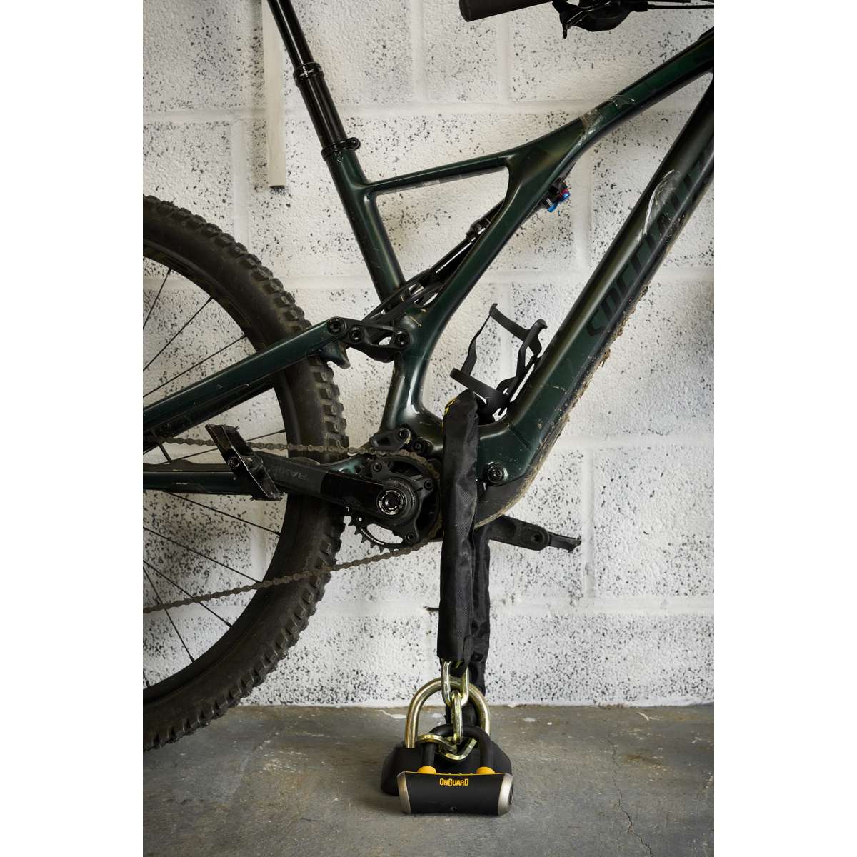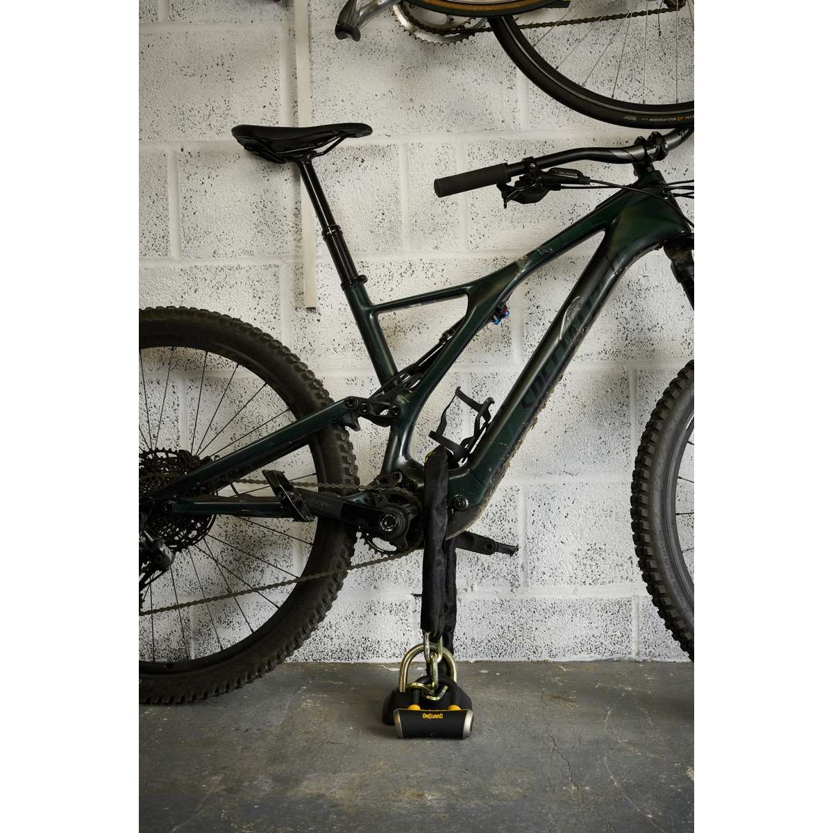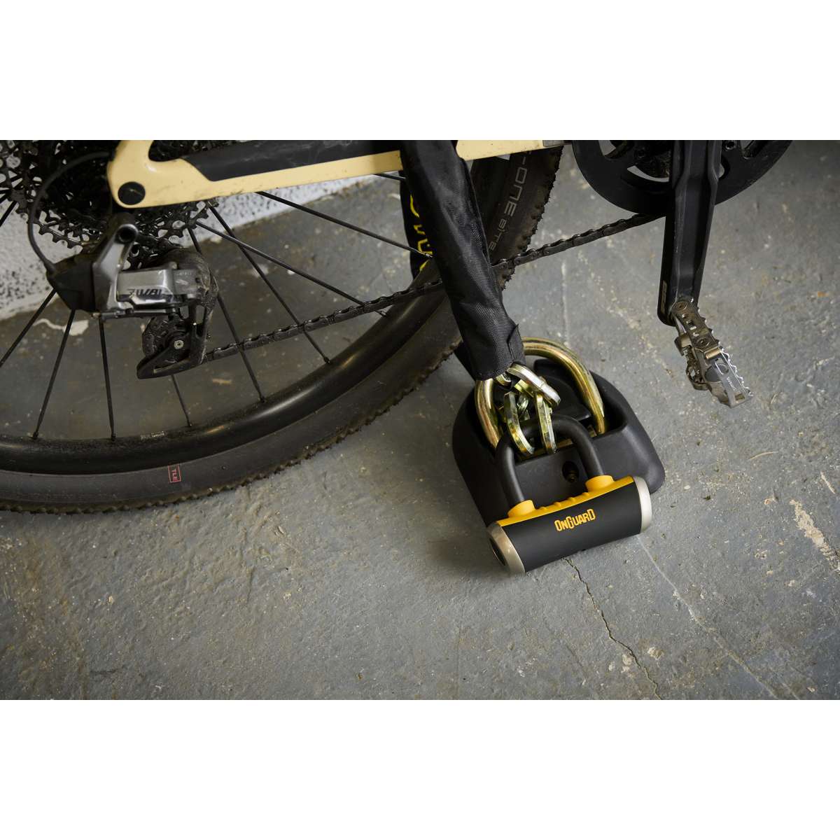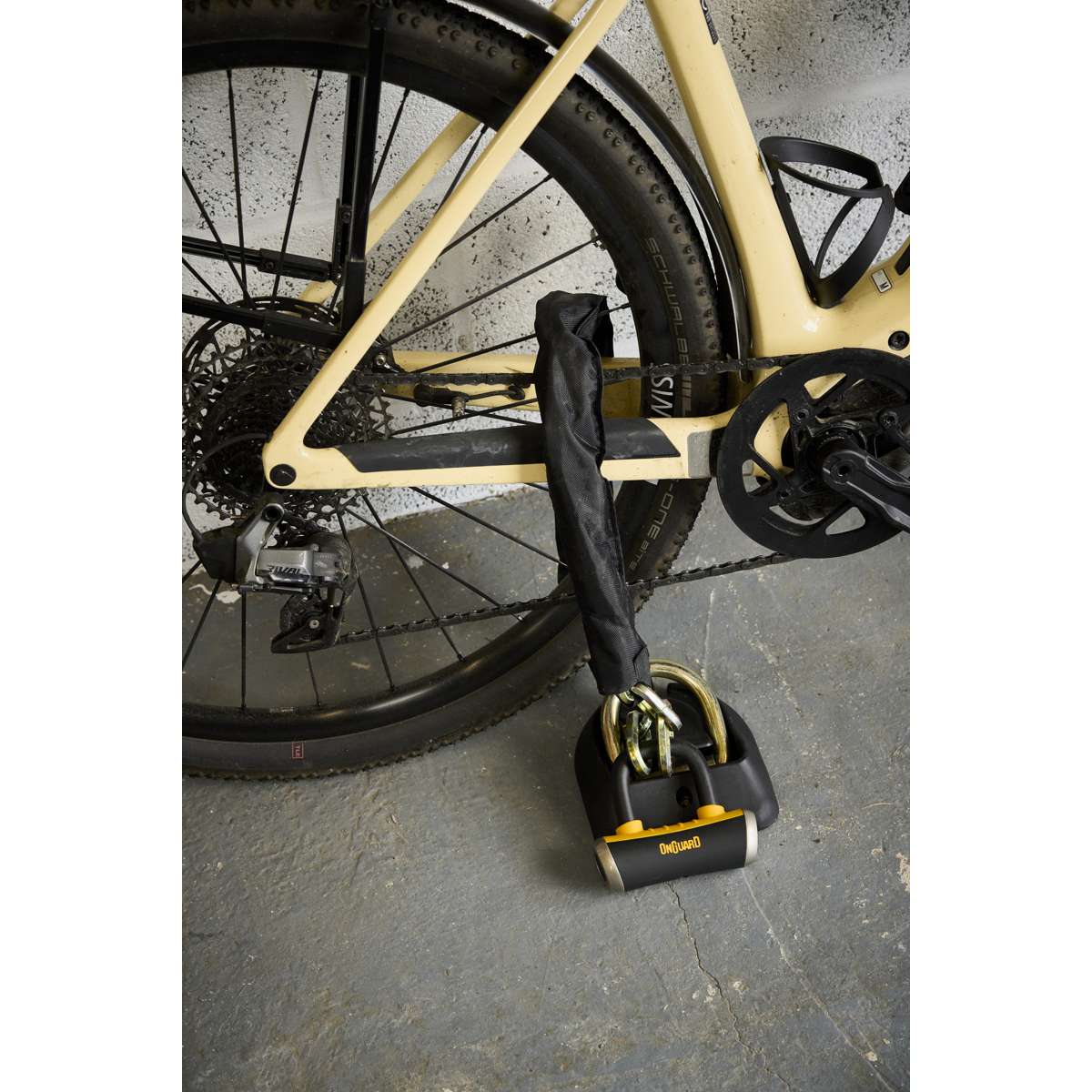 The OnGuard Mastiff 3.5’ Chain with X4 Padlock provides dual protection with a 1040 mm (40.9 in) titanium-reinforced hardened-steel hex link chain and a short-shackle Boxer U-lock featuring the X4P Quad Lock. The lock secures the shackle on four sides to resist twisting and prying, while the 45 mm (1.8 in) chain sleeve prevents scratches. The Z-Cylinder core blocks bumping, drilling, and picking for lasting reliability. The Boxer U-lock can also be used separately as a disc lock. **Includes five laser-cut keys (one with LED).**
