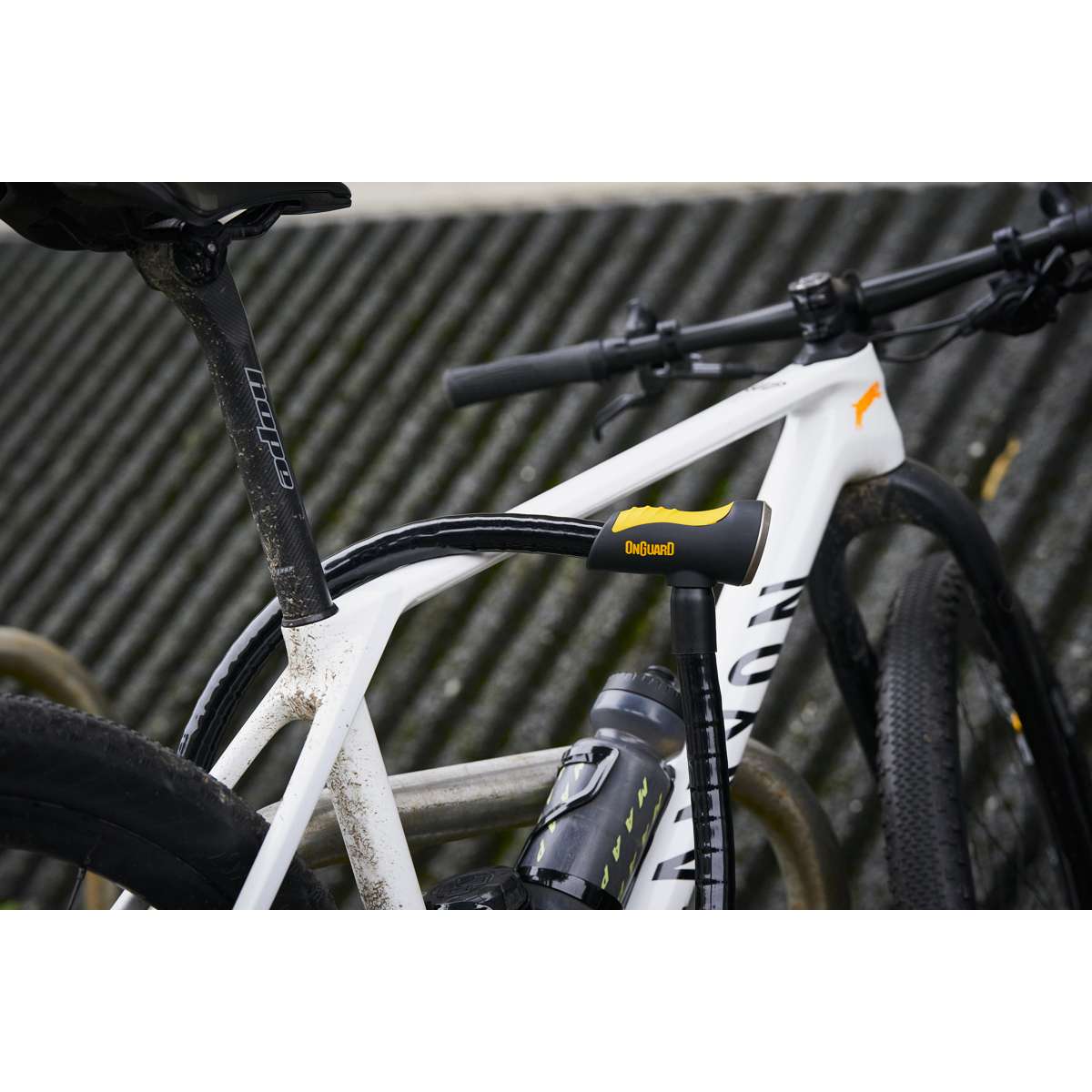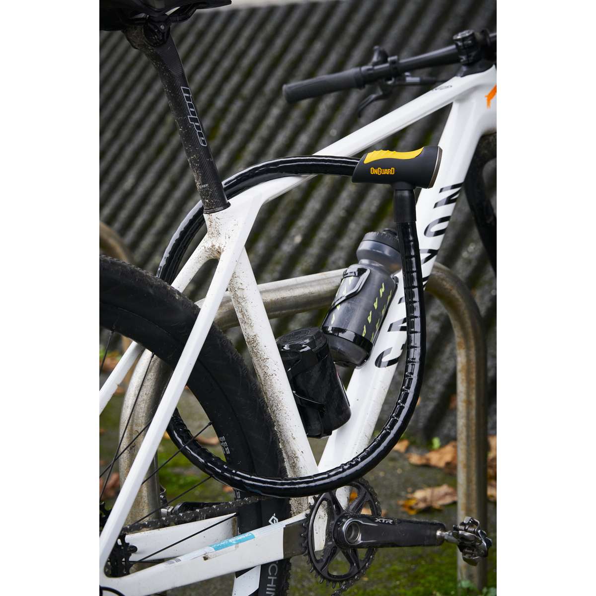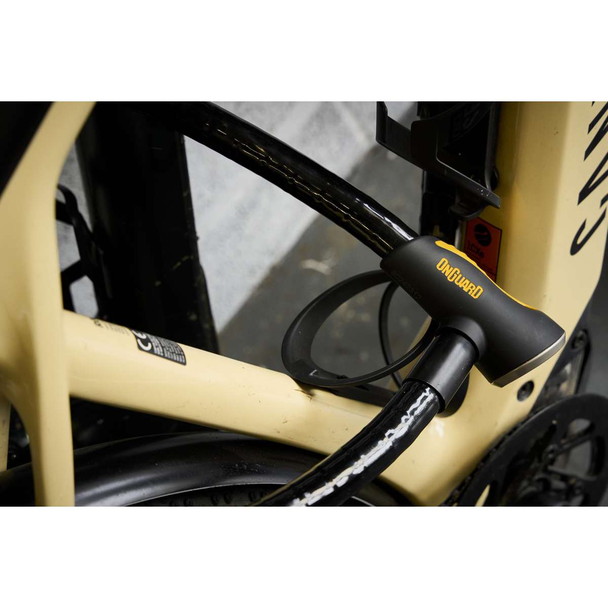 The OnGuard Rottweiler 4' Armored Key Cable delivers serious security in a compact, portable package. Its 4-foot flexible twisted-steel core is wrapped in hardened steel armor to resist bolt cutters and prying attacks. The X2P Double Bolt Lock secures both sides of the shackle for maximum holding power, while the Z-Cylinder core provides advanced protection against picking and drilling. A durable vinyl coating prevents scratches and finish damage. Includes five precision laser-cut keys, one with a built-in LED for night use, ideal for bikes, gates, scooters, and gear.