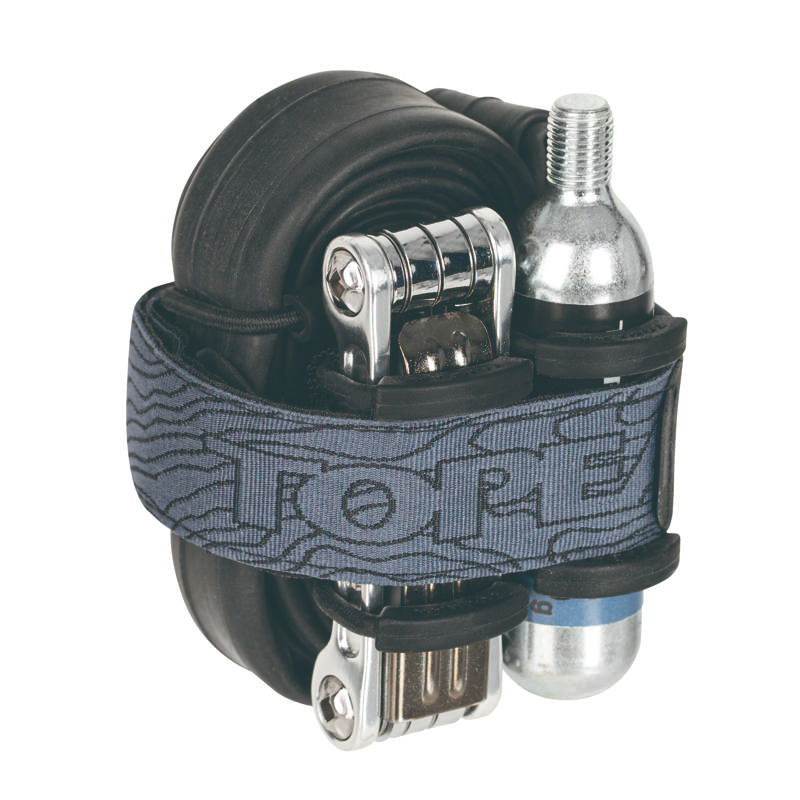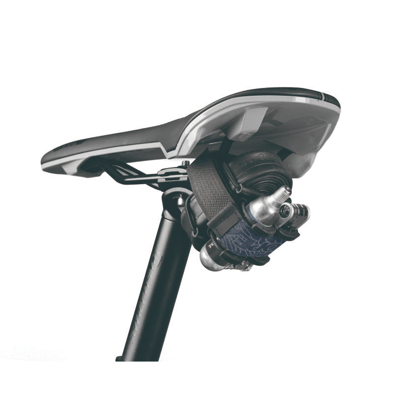 Keep essential repair gear secure and accessible with the Topeak Elementa Strap Small. It mounts to saddle rails, a seatpost, or downtube using a strong hook-and-loop system, while two detachable nylon straps let you quickly remove tubes, CO2, or tools. Built from durable polyester with bungee webbing and anti-slip, scratch-free fabric for stable, quiet storage on any terrain.