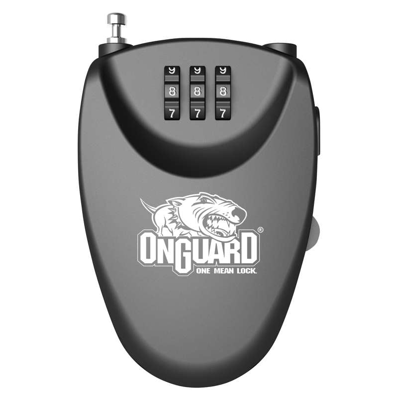 The OnGuard Terrier Roller Mini 2' Retractable Cable Lock is the ideal portable security companion for helmets, luggage, or personal items. Featuring a durable 60 cm (1.95 ft) retractable steel cable with 5 mm endcaps, it combines lightweight convenience with practical protection. The user-settable 3-digit combination eliminates key hassle, while the vinyl-coated finish prevents scratches on delicate surfaces. Compact enough to fit in a pocket, purse, or handlebar bag, this ultra-light lock is perfect for travelers, commuters, and cyclists seeking reliable security on the go.