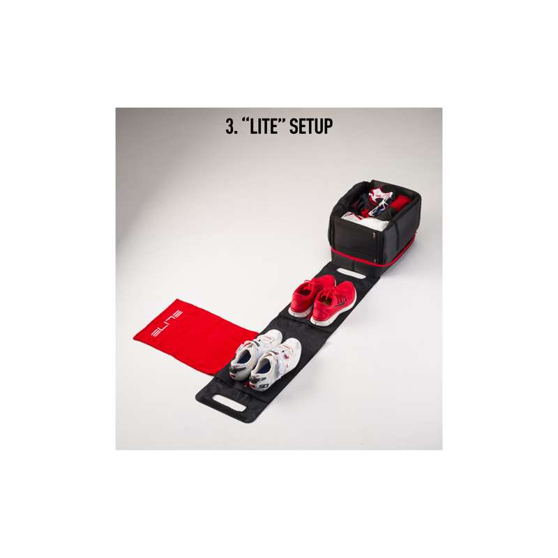 The Elite Tribox Bag is a fold-out triathlon/duathlon organizer designed for fast, efficient transitions, with customizable layouts, dedicated storage zones, and a portable backpack design for race-day convenience.