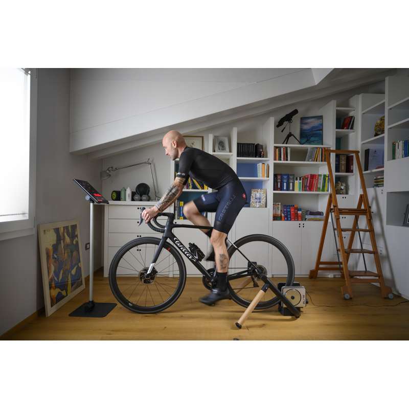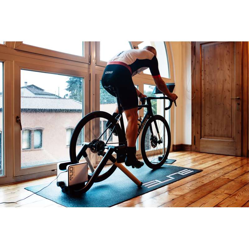 The Elite Tuo Interactive Wheel-On Trainer combines sleek Italian design with smart automatic resistance, compact folding structure, and seamless ANT+/Bluetooth connectivity for realistic indoor cycling sessions.