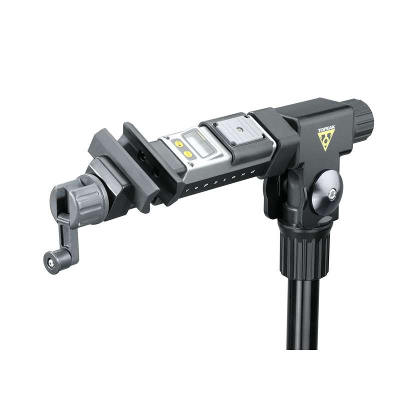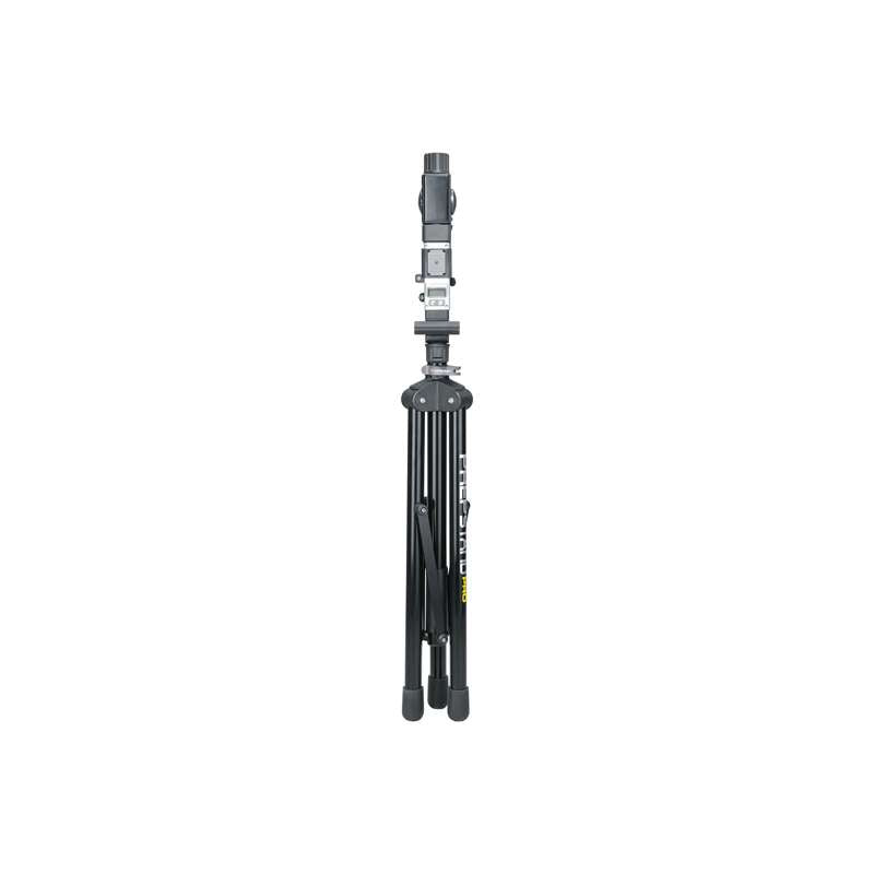 The Topeak PrepStand Pro is a professional-grade folding bike repair stand designed for precision, stability, and portability. It features a built-in digital weight scale for accurate component measurement, a 360° rotatable clamp with non-marring rubber jaws, and a sturdy tripod base for maximum balance. Made from lightweight 6061 T6 aluminum tubing, it supports bikes up to 55 lbs and folds compactly for easy storage or travel to races and workshops.