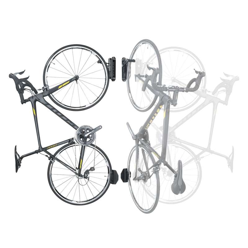 The Topeak Swing-Up Bike Holder is an elegant, space-saving wall-mount solution engineered for riders who value both form and function. Its pivoting side-swing mechanism lets you rotate the bike left or right, optimizing room in apartments, garages, or offices. Compatible with wheel/tire combinations up to 3.15” overall height and 2.35” width, it features a molded rubber bar to secure the front wheel and a protective rear-wheel pad to prevent wall marks. Constructed from high-strength aluminum and durable polymer, the Swing-Up ensures long-term reliability and sleek presentation—perfect for displaying or storing your favorite bike.