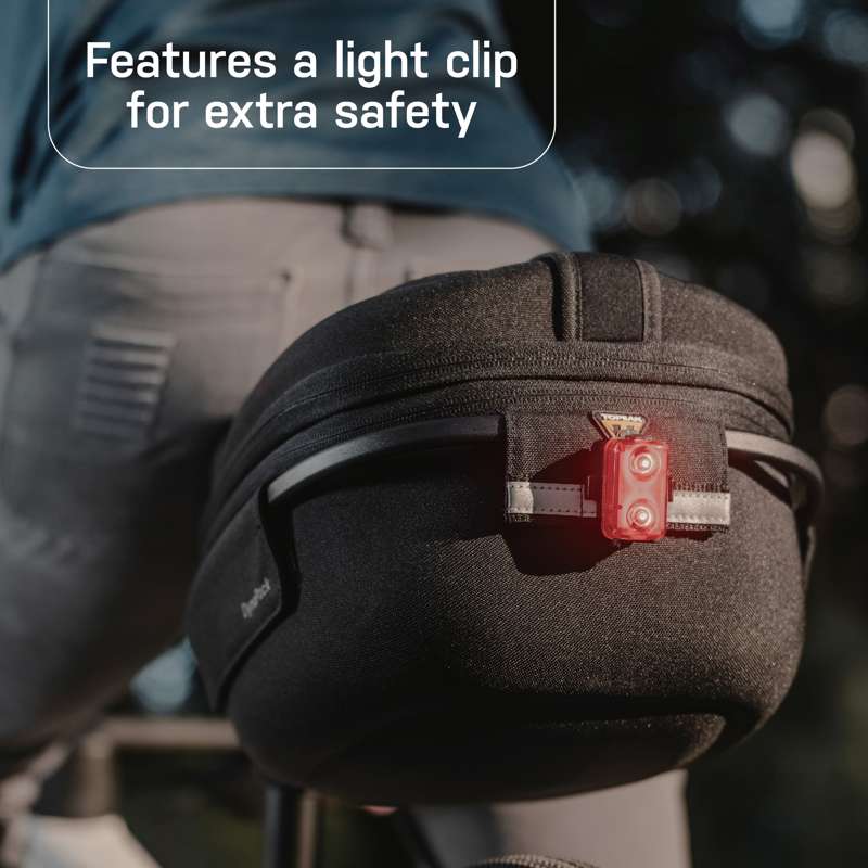 The Topeak DynaPack DX Saddle Bag is a premium seatpost-mounted bag that combines near TrunkBag-level capacity with the convenience of a quick-release design—no rack required. Designed for riders who need versatile storage without compromising aerodynamics, this 9.7-liter bag features an expandable top compartment ideal for helmets, shoes, or jackets. Its rigid EVA foam and 600 denier water-repellent polyester shell protect contents from dirt and rain while maintaining a sleek, structured look. The lightweight aluminum exo-frame offers stability and mounts securely to seatposts measuring 24.5–34.9 mm, while the integrated Quick Release system allows effortless attachment and removal in seconds. With internal organization pockets, a 3M reflective safety strip, and a rear light clip, the DynaPack DX ensures your essentials stay organized, protected, and visible—perfect for commuting, touring, or long weekend rides.