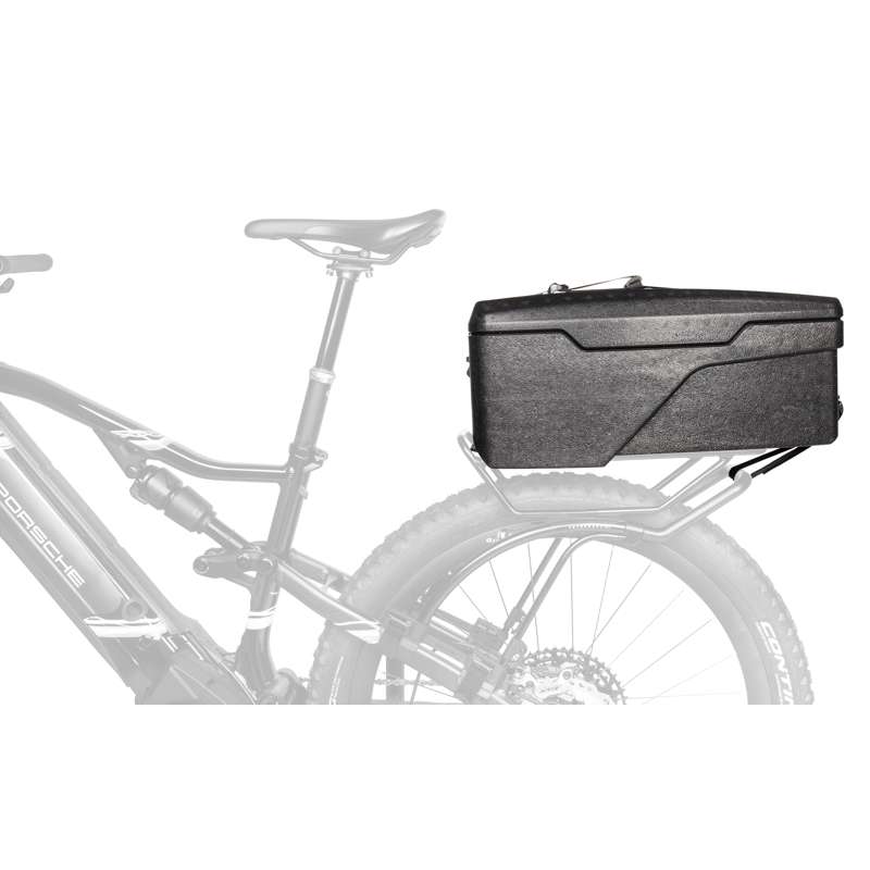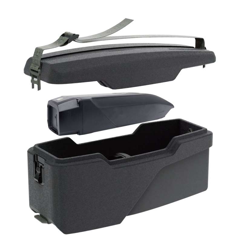 Built for long-distance eMTB adventures, the Topeak E-Xplorer TrunkBox securely transports spare eBike batteries with exceptional protection. Made from expanded polypropylene (EPP), it provides impact absorption, high strength, thermal insulation, and weather resistance. The integrated MTX QuickTrack 2.0 system ensures fast slide-and-lock mounting on TetraRack M2L racks, while internal grip straps keep your battery firmly in place. With room for food, tools, and trail essentials, it is the ultimate eMTB storage solution for Bosch, Shimano, Yamaha, and Brose batteries.