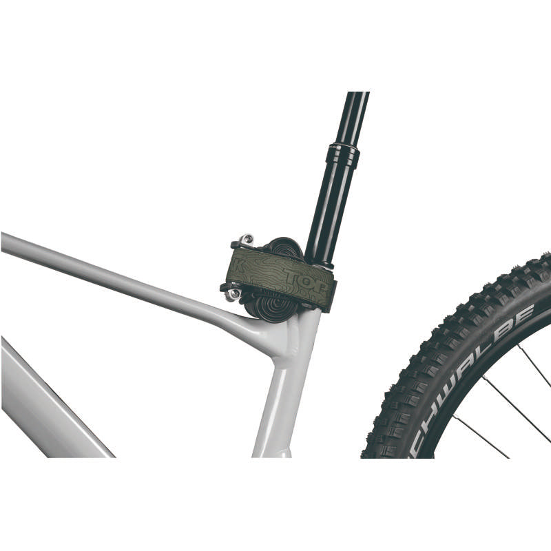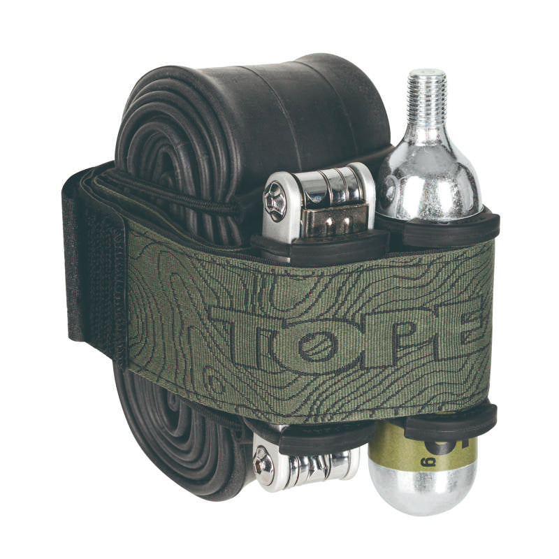 The Topeak Elementa Tool Strap Large offers secure, flexible storage for tubes, CO2, tools, and trail essentials. It mounts to saddle rails, a seatpost, or a downtube using a strong hook-and-loop strap, while two detachable nylon straps allow fast removal of gear during roadside or trailside repairs. Built from durable polyester with bungee webbing, anti-slip fabric, and scratch-free contact points for silent, stable, all-terrain performance.
