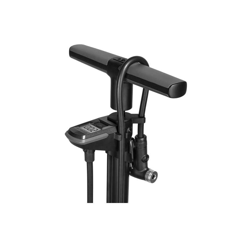 The Topeak JoeBlow Pro Digital delivers precise inflation with a top-mounted digital gauge protected by a rubber bumper, offering accurate readings up to 200 psi. Built with a hardened steel base and painted steel barrel, it provides stable, long-lasting performance. The SmartHead DX3 automatically adapts to Presta or Schrader valves and includes an air release button and extra-long hose for easy operation.