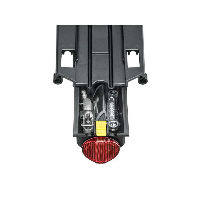 The Topeak MTX BeamRack EX is a lightweight yet durable quick-release rear rack built for mountain bikes and daily commuters alike. Constructed from a sturdy aluminum beam with a reinforced plastic cargo deck, it supports up to 15 lb (7 kg) while keeping weight to a minimum. The Quick-Release (QR) mounting system ensures fast, secure attachment and removal, making it ideal for riders who need flexibility. Compatible with all Topeak MTX TrunkBags, this rack also includes a hidden storage tray, rubber bungee, and rear safety reflector for enhanced practicality and visibility on every ride.