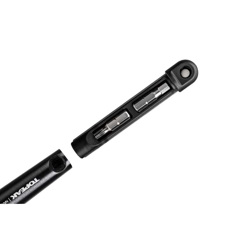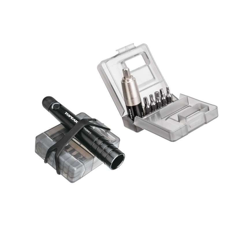 The Topeak Nano TorqBar X is a compact, professional-grade torque wrench engineered for cyclists who demand precise component tightening on the go. With a 2–6 Nm torque range and ±6 % accuracy, it prevents damage to carbon and alloy parts while ensuring consistent performance. Crafted from hardened steel with an aluminum and engineering-grade polymer body, it’s both durable and lightweight. The handle stores two bits for quick access, and a protective case keeps all five bits—3 mm, 4 mm, 5 mm Allen, T20, and T25 Torx—organized. Measuring only 6 in (15.2 cm) and weighing under 5 oz, it’s the perfect precision companion for workshop or roadside repairs.