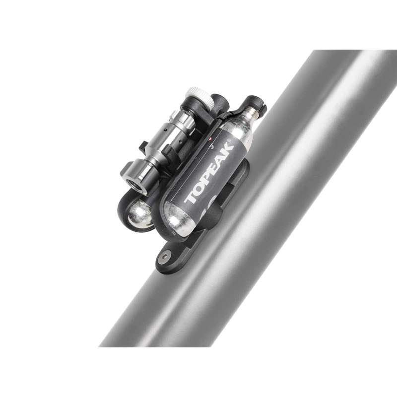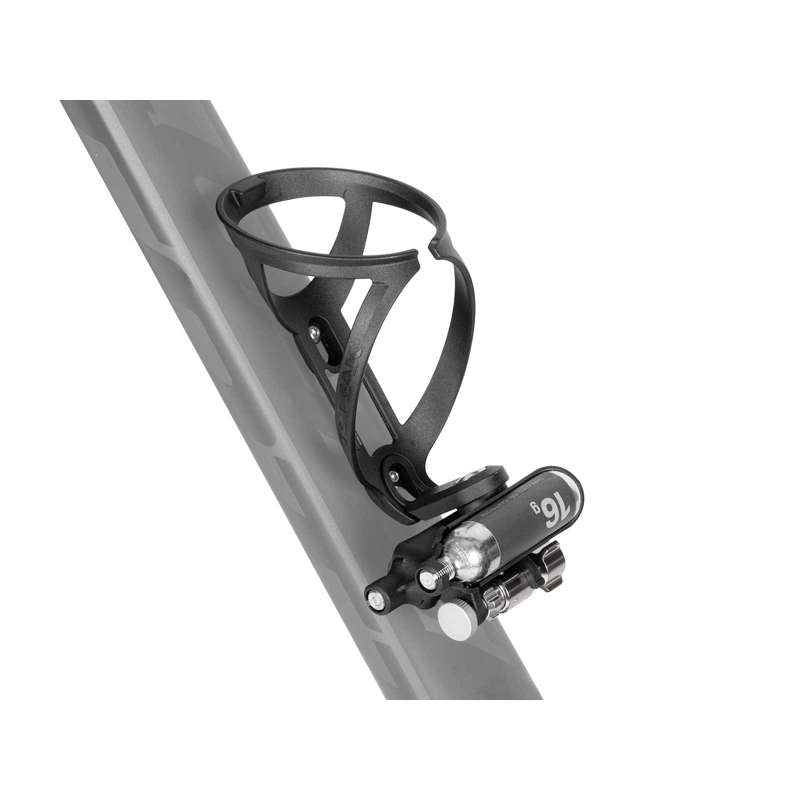 The Ninja Master+ CO2 FuelPack is a must-have for any cyclist, offering quick and efficient flat tire repair on the go. Designed to mount seamlessly under Ninja water bottle cages or be used independently, this compact kit ensures you're prepared for any ride. With its CNC aluminum inflator head, compatible with both Presta and Schrader valves, inflating your tires is as easy as a push. The FuelPack includes two 16g threaded CO2 cartridges, securely stored alongside the inflator in a dedicated compartment. Whether mounted to your bike frame, stem, seatpost, or bottle cage, this tool keeps you moving without hassle.