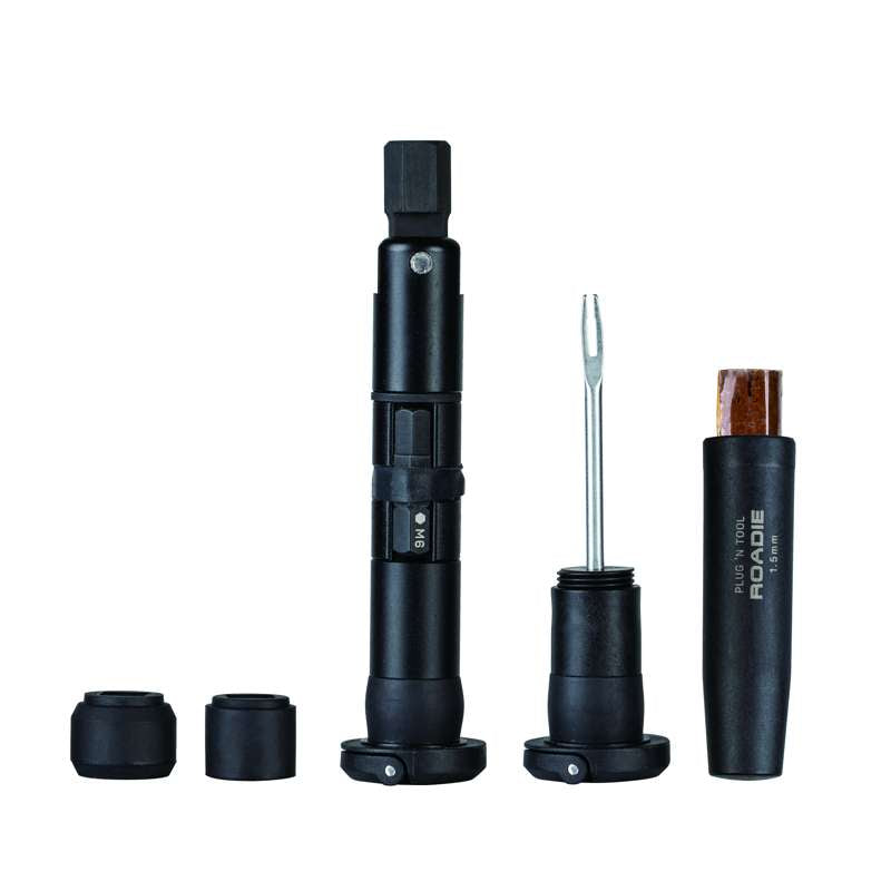 The Topeak Plug’n Tool Roadie Multi-Tool provides discreet, on-the-go maintenance capability for road cyclists. Two hidden tool kits fit seamlessly inside your round handlebar ends, offering quick access without adding bulk. The set includes a 1.5mm plug insertion tool for tubeless tire repair and 4, 5, and 6 mm Allen bits for essential adjustments. Made from hardened steel and engineering-grade polymer, it’s both durable and lightweight. Designed for handlebar IDs of 18–21.2 mm with at least 86 mm of straight section, it’s the perfect minimalist repair companion.