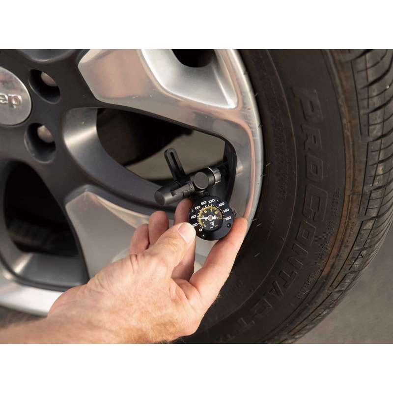 This mini sized gauge can be attached between the pump and valve to read pressures while pumping or used alone. Provides pressure readings up to 160 psi / 11 bar. Rotating gauge is easy to read and the head works with Presta, Schrader or Dunlop* valves on bikes / motorcycles / car tires, forks or shocks while the Thumb Lock lever ensures an airtight seal. An air release button allows fine tuning of pressure.
