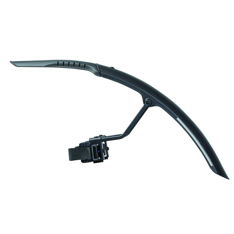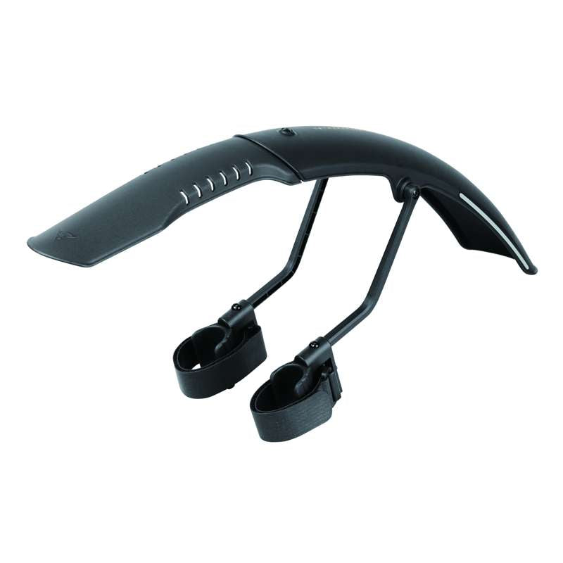 Designed for gravel riding, the Topeak TetraFender G1 delivers secure, quick-mount front protection for 650–700c wheels up to 50mm wide. Hook-and-loop straps simplify installation on any fork, while adjustable struts optimize coverage for mud and spray. The durable dual-tone high-impact plastic design includes a polished underside to reduce dirt buildup and 3M reflective decals for enhanced nighttime visibility. Fits all frame materials.