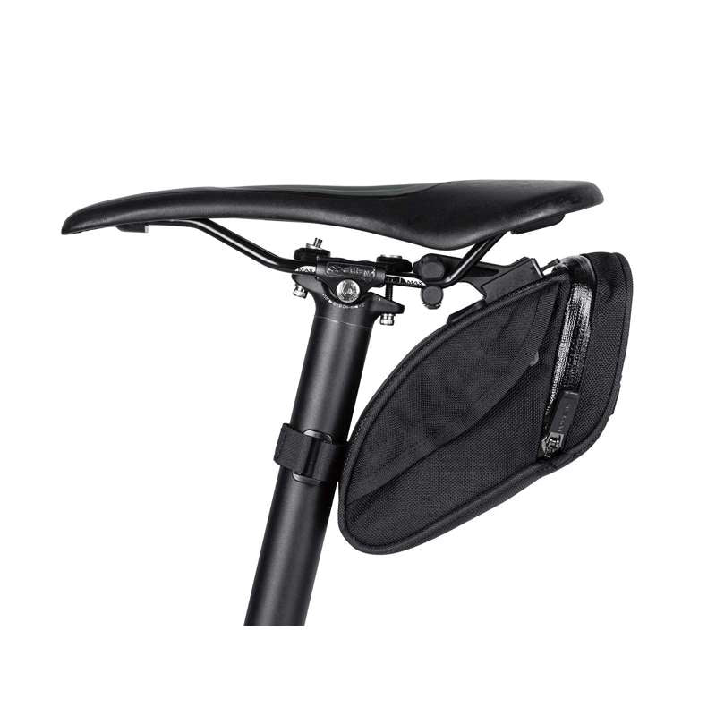 The Topeak Aero Wedge Pack DX with Fixer F25 (Medium) combines aerodynamic performance, practical storage, and rugged durability for everyday riders. Its sleek wedge shape minimizes wind resistance while providing ample space for tools, tubes, and small essentials. Constructed from 1000 denier nylon, the pack features internal pockets for organization, a QuickClick system for fast mounting, and a seatpost strap for extra stability. Reflective 3M striping and a safety light clip enhance visibility, making it an ideal companion for commuting or long-distance rides.