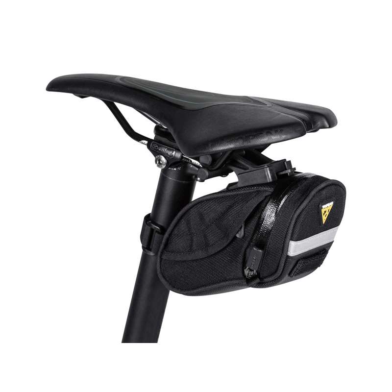 The Topeak Aero Wedge Pack DX with Fixer F25 (Small) is a compact, aerodynamic saddle bag designed for cyclists seeking streamlined performance and practical storage. Its sleek wedge shape minimizes drag, while internal pockets organize tools, tubes, and valuables with precision. Built from rugged 1000 denier nylon with water-resistant coating, this bag attaches securely using Topeak’s QuickClick system and an adjustable seatpost strap. Enhanced with 3M reflective accents and a safety light clip, it ensures superior visibility for road, gravel, and mountain rides alike.