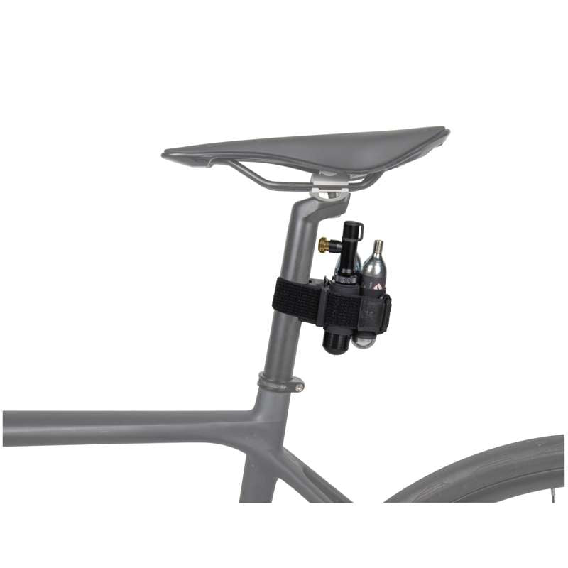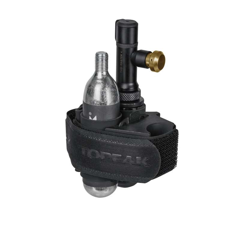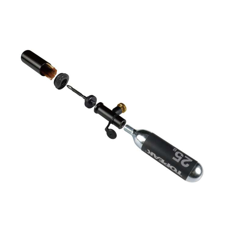 The Topeak Tubi Master X is a compact, all-in-one tubeless repair and inflation kit designed for quick, efficient roadside fixes. Made from durable CNC-machined aluminum, it features a 2-in-1 CO2 injector head that plugs and inflates tubeless tires simultaneously, saving time and effort. Compatible with Presta and Schrader valves, the kit includes a stainless steel tire reamer and plug insertion tool, plug retainer, disc insertion spacer, and one 25g CO2 cartridge. Weighing only 220g with all components and measuring just 12.3 x 6 x 5.8 cm, it mounts easily to your seatpost, frame, or saddle rail using the included adjustable strap, making it a lightweight and essential companion for road, mountain, and gravel cyclists.