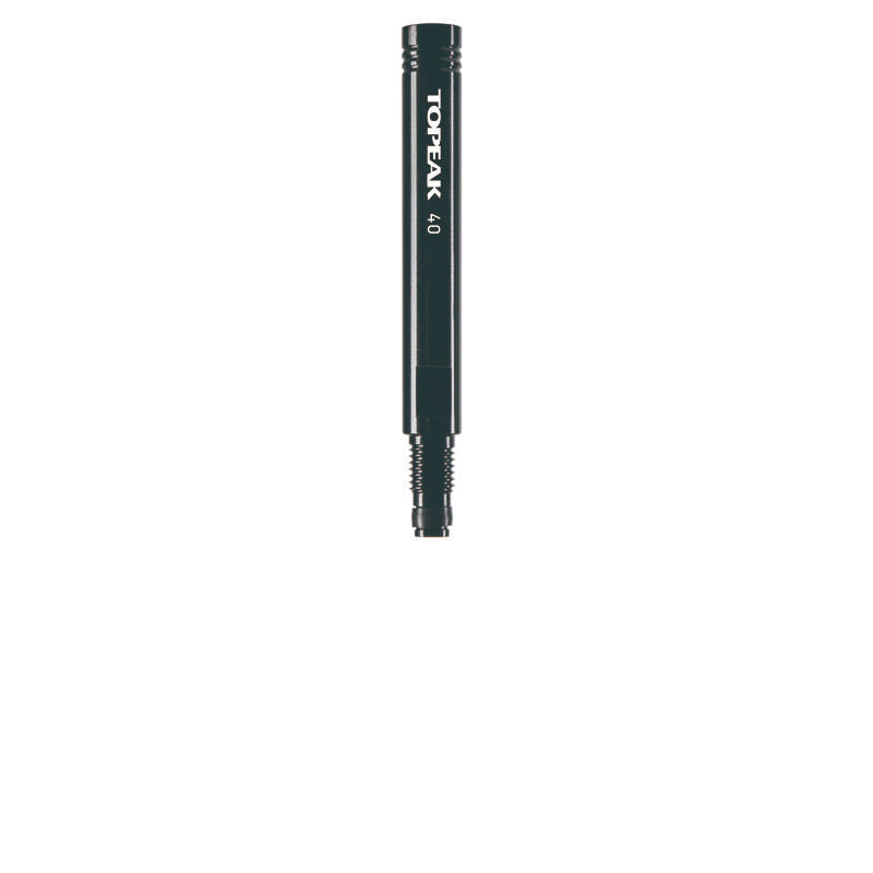 The Topeak Valve Extender Set (40 mm, Pair, Black) provides a professional solution for riders using deep-section rims or aero wheels. Machined from aircraft-grade aluminum alloy, these precision extenders lengthen two-piece Presta valves for easier inflation and pressure adjustments. Each extender weighs only 1.8 g and includes a durable aluminum valve tool for tightening or removing valve cores and extenders. For an improved air seal, wrap the threads with Teflon tape before installation. Compact, corrosion-resistant, and easy to carry, this set ensures reliable performance for both road and triathlon bikes.